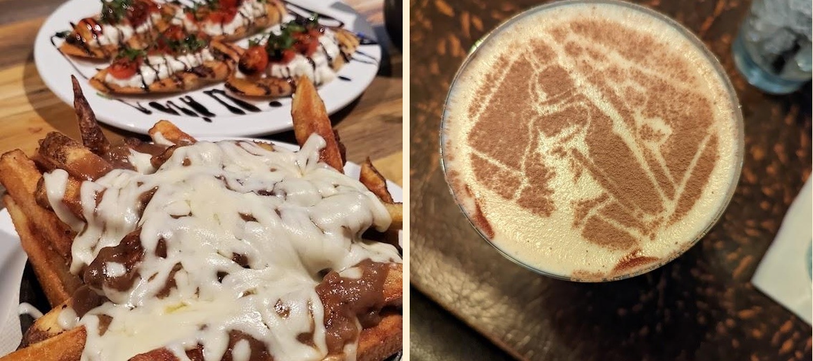 Start with the Fried Cheese Curds and Mussels. For the main, don't miss the Smash Burger or Elvis's Jam Burger. Pair any dish with a refreshing Caribbean Sunset cocktail.